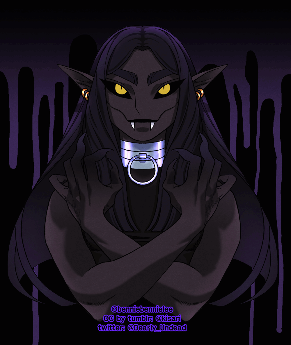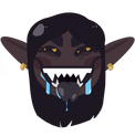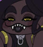 Features: Dark "scars" running from the corners of his mouth along his cheeks and down his jaw and neck, wolf-like teeth, and a thick three-tiered collar always adorning his neck.