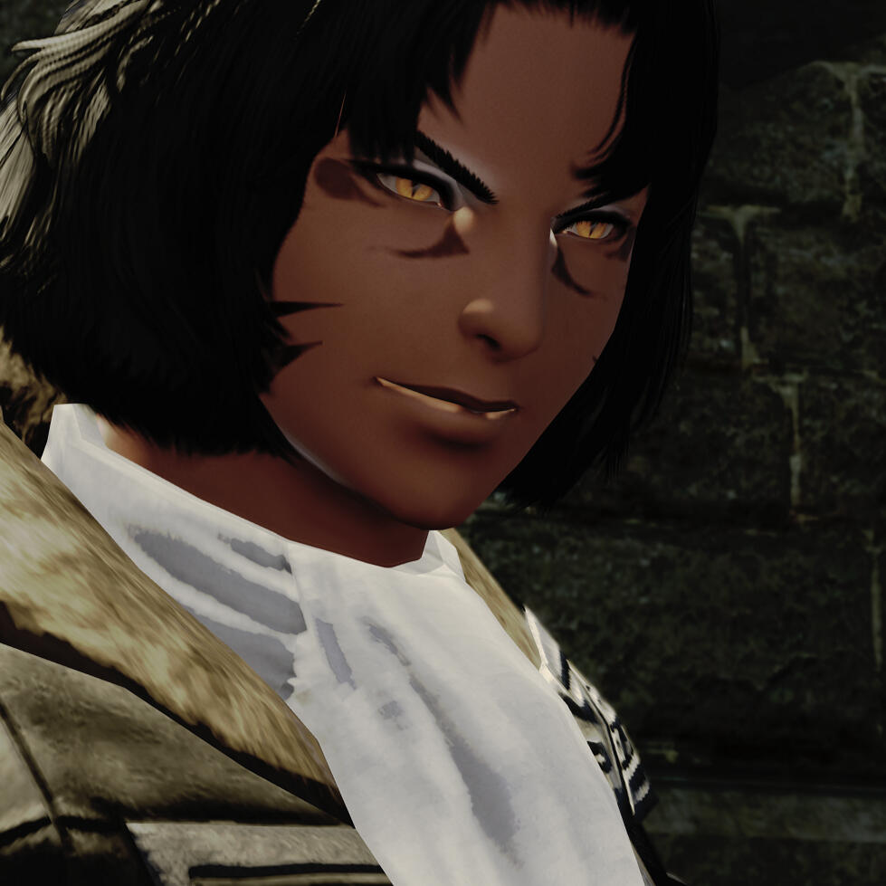 A strange elezen that lives within the Shroud. Easy-going and quiet, Oleander spends the majority of his time sleeping, eating and indulging. Though he rarely leaves the forest, he is filled with curiosity and a craving for life.His voice is soft, and haunting. Each word comes out slowly, and he rarely speaks. While being fluent in Eorzean, Oleander simply prefers not to say anything if he does not have to.They have no respect for rules or laws, and have a hard time getting along with any do-gooders because of this. Though he has no qualms with stealing, he still tries to avoid bloodshed. This is sometimes a challenge as he has a bit of an ego, but he hates being inconvenienced more.Along with his dubious morals, he is fiercely loyal. Oleander will stop at nothing to please his friends, often bringing surprise gifts for them just to see a smile on their face. This includes food, as he'll often bring gifts of fish for those he cares for.His gullibility is his biggest downfall, as once you have his trust, he'll believe almost anything you tell him. Having no strong beliefs of his own, he simply assumes everyone else must know what they are talking about.